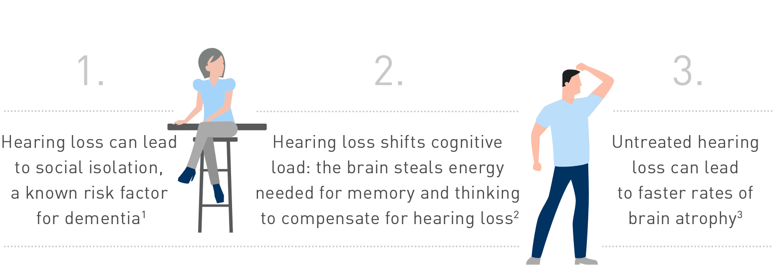 - Adultos com perda auditiva têm até 5 vezes mais probabilidade de desenvolver demência1